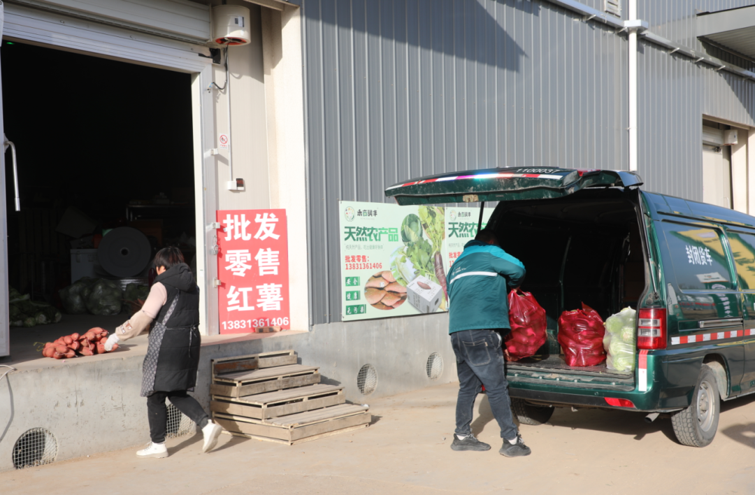 新年伊始,在康庄禾亩润丰合作社,新鲜蔬菜一茬茬上市。蔬菜的储存期较短,快速运输,才能保证蔬菜的品质和口感。早上9时,一辆辆运输车将新鲜的蔬菜运往中转站后由工作人员送到客户的手中。