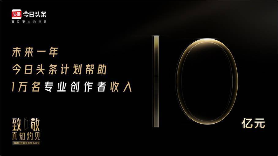 大会发布了最新的创作者扶持计划——“头条行家计划”,旨在通过个人品牌打造、流量和现金扶持、内容变现力提升等方式,在未来一年帮助1万名专业创作者收入10亿元。
