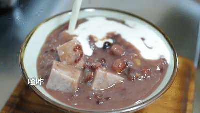 一碗喳咋里面料超多,光豆子就有眉豆、鹰嘴豆、花芸豆、红小豆、红腰豆等八种,另外还加入了荔浦芋头、西米和椰奶,稠稠的、甜甜的还带着丝丝的奶香,入口有点像在喝椰奶八宝粥,口感超级丰富!