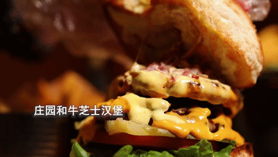 这个摞得巨厚巨高的汉堡看起来是不是很诱人?蓬松酥软的汉堡皮下夹有两层的牛肉饼以及培根、腌黄瓜、蘑菇、西红柿和生菜,内容相当的丰富!不过小编还是要提醒您,吃的时候可要拿稳了,小心最厚的牛肉饼掉出哦!