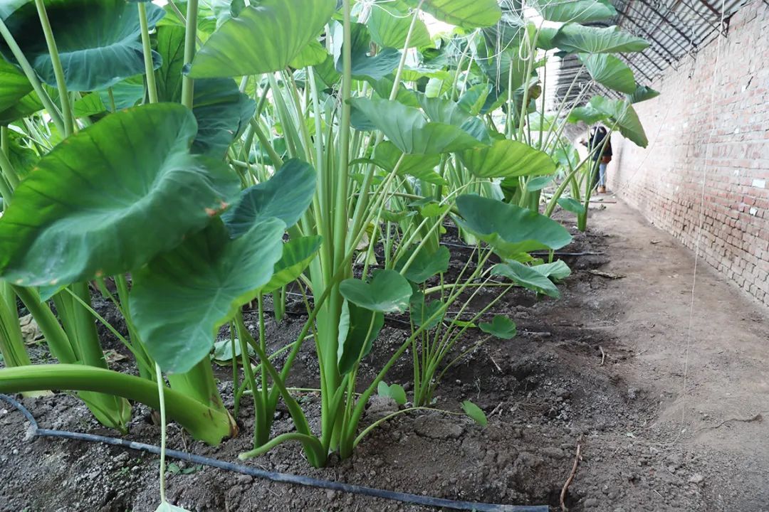温室大棚内的芋头秧。
