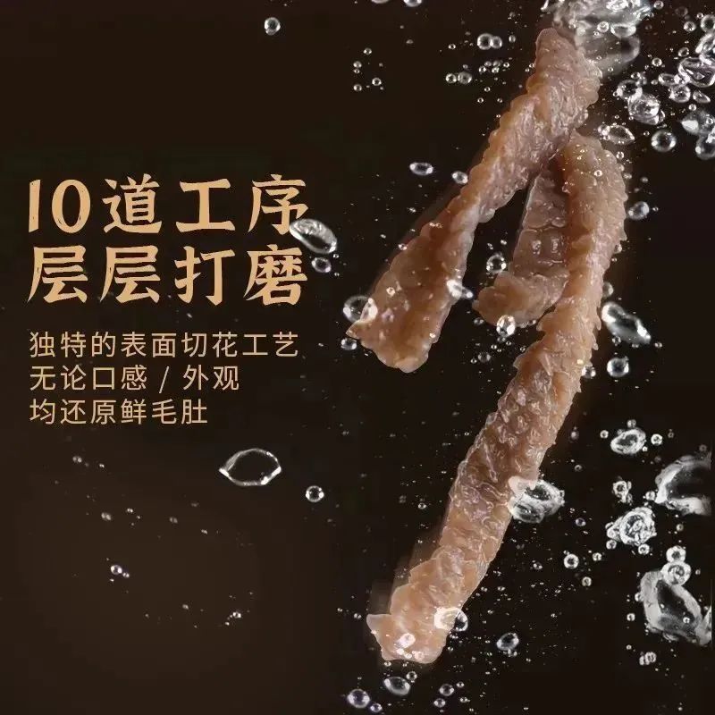 这款水爆肚里面的魔芋,经过了10道工序,去除了魔芋本身的腥味,再加上独特的表面切花工艺,无论是口感、外观均还原了鲜爆肚。