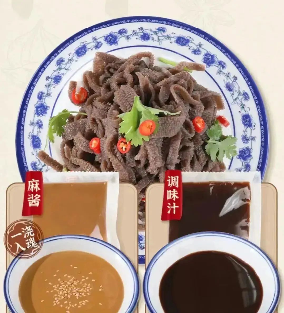 正宗老北京口味!吃过的小伙伴们一致认为,这款魔芋水爆肚之所以够美味,灵魂绝对是里面的秘制麻酱、辣椒油、芝麻和调料汁;