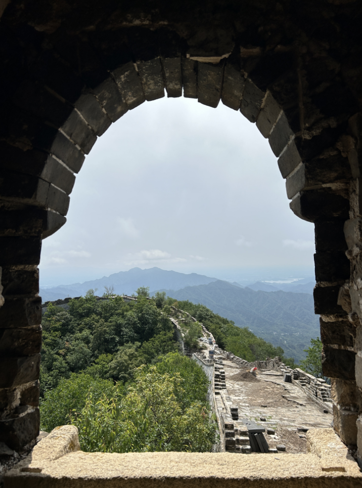 从怀柔区雁栖镇西栅子村出发,前往“牛角边”,山路长2.3公里,海拔爬升400多米,寻常脚力的人要1.5小时。每天早上,负责修缮的施工队员“看见天光”就起,5点钟准时上山,抓紧在太阳暴晒之前,多干点活。