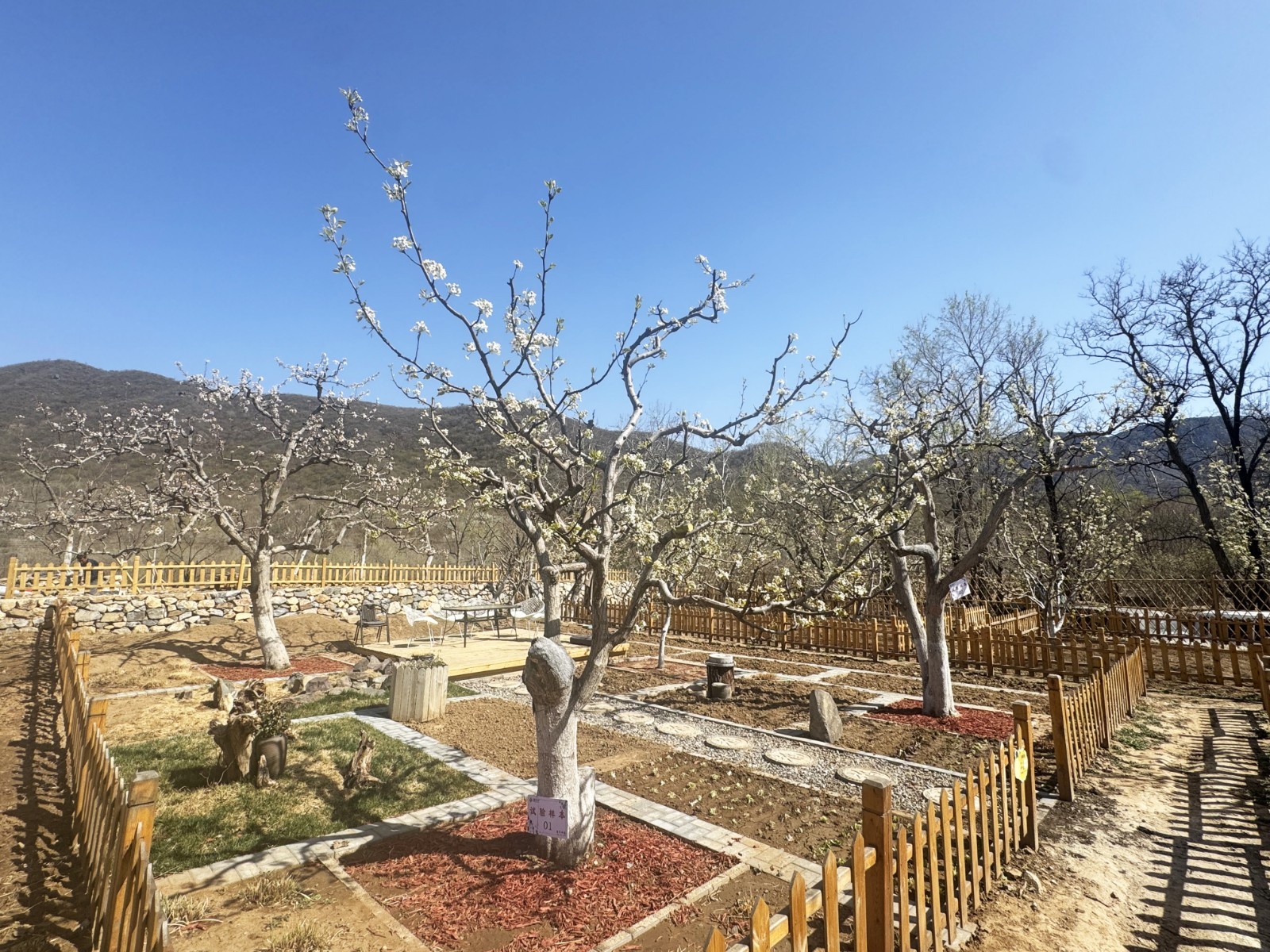 随后,记者又来到处于建设阶段的梨享田园,看到这里的600余棵京白梨果树已经花满枝头。