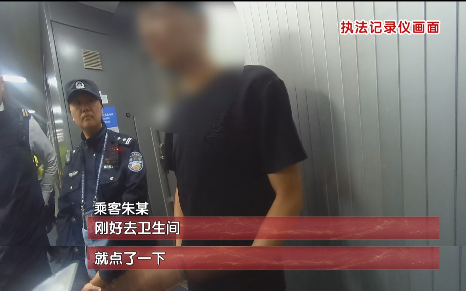 随后,在卫生间内的垃圾桶里,民警发现了旅客朱某吸食香烟后剩下的烟头。