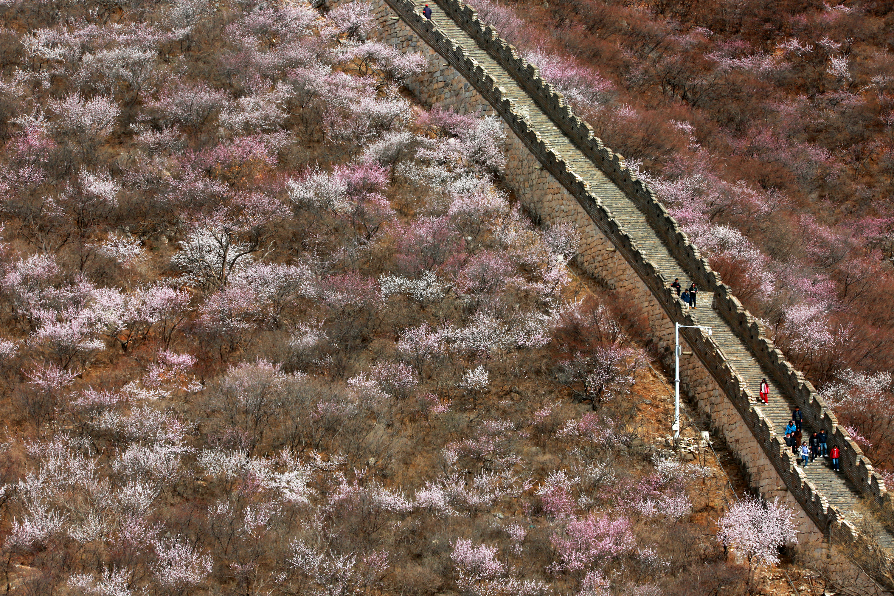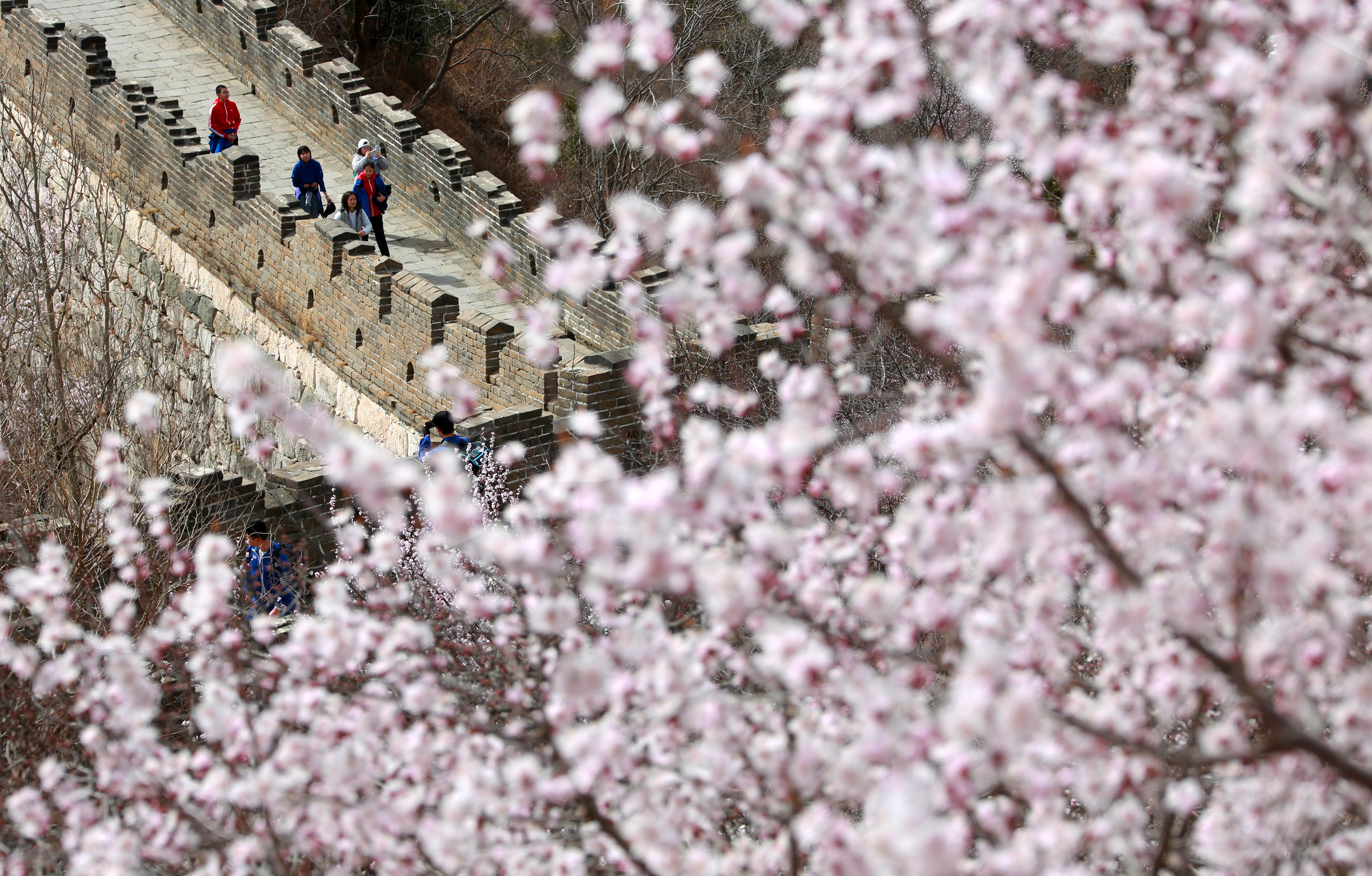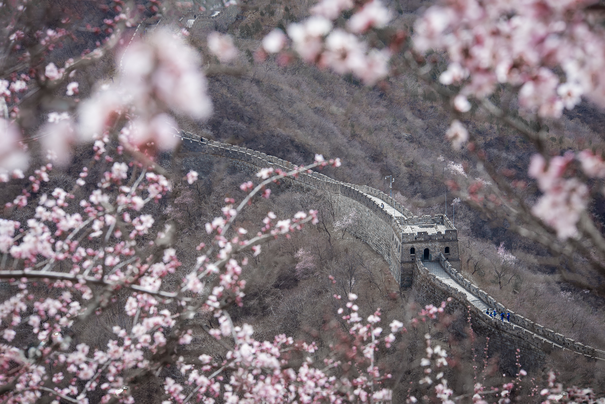 距市区70公里的慕田峪长城景区,山桃花已经在春风中绽放,丛丛的粉色与古老的城墙互相映衬。游客还能看到晚樱、玉兰等山花盛放。打卡慕田峪,还有更多热闹市集等着你探索。