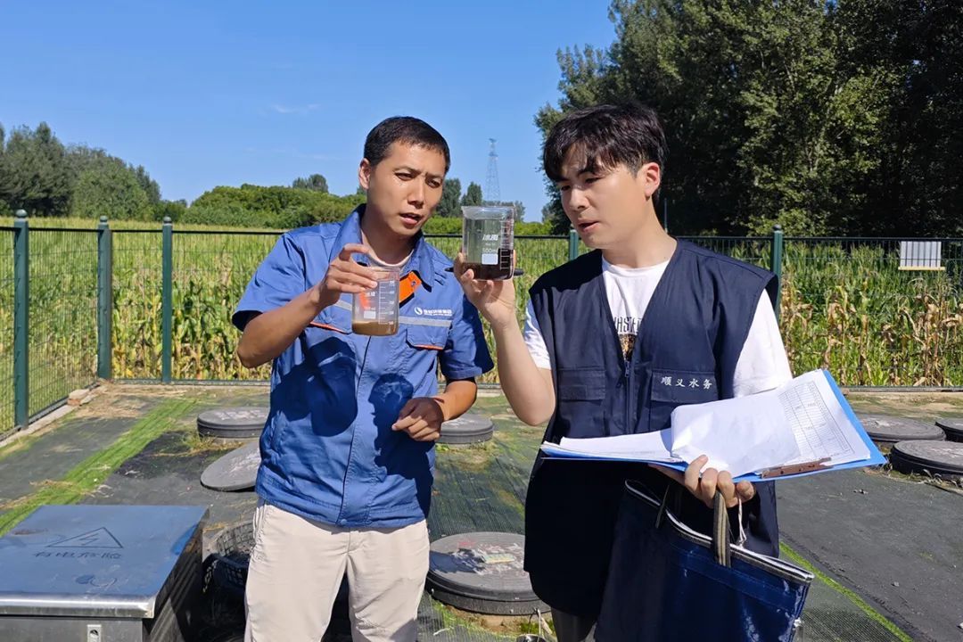 顺义市政控股集团所属公司工作人员查看水质检测报告。