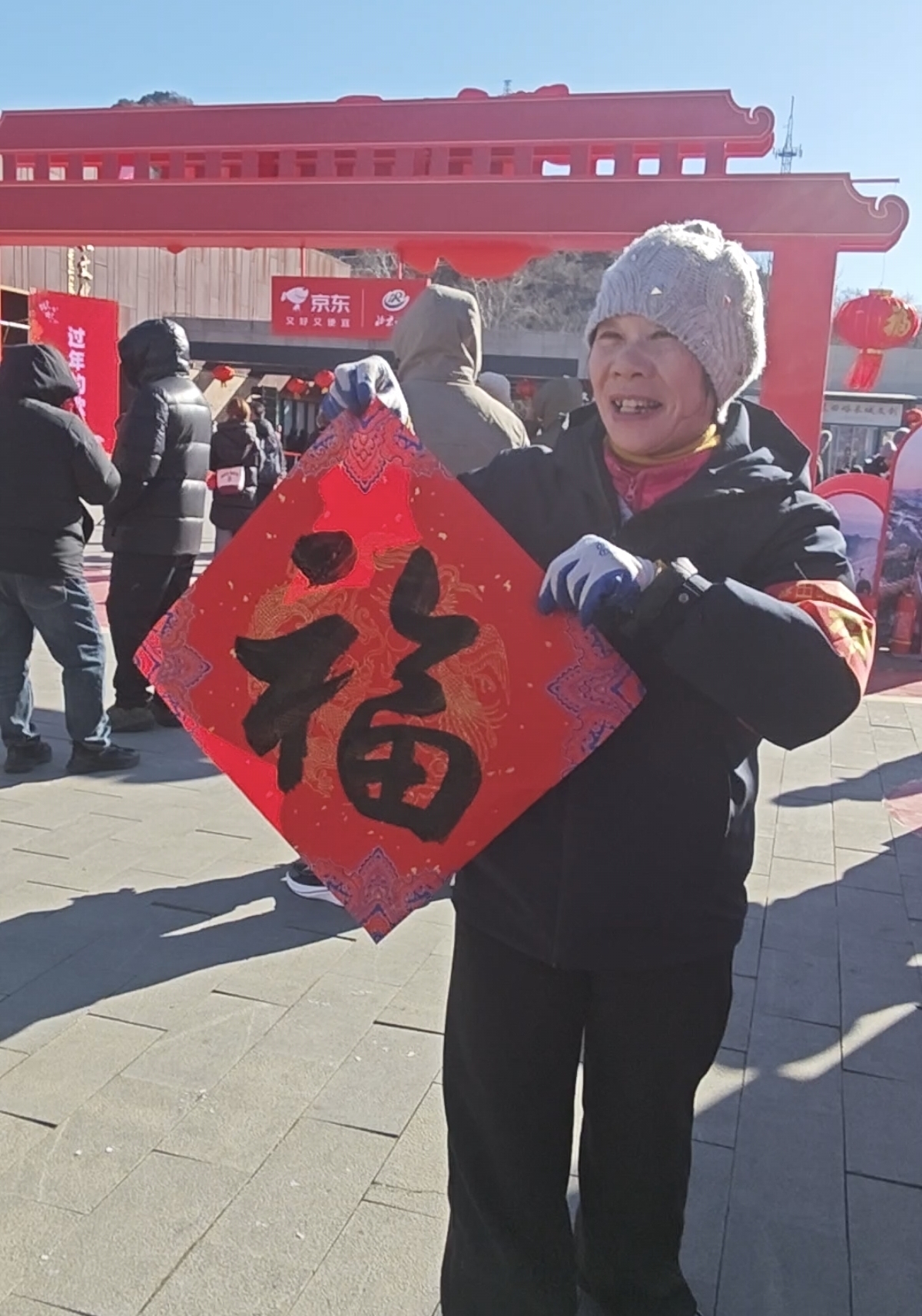 与此同时,“来怀柔 过大年”京东年货大集热闹开集,为期两天。慕田峪景区广场,近20个特色市集展位,涵盖板栗糕点等美食、植物扎染等互动体验、怀柔特色文创产品,让年味直接拉满,游客挑选不停。