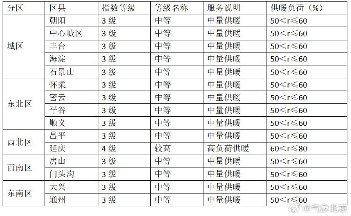 白天供暖气象指数(等级)预报