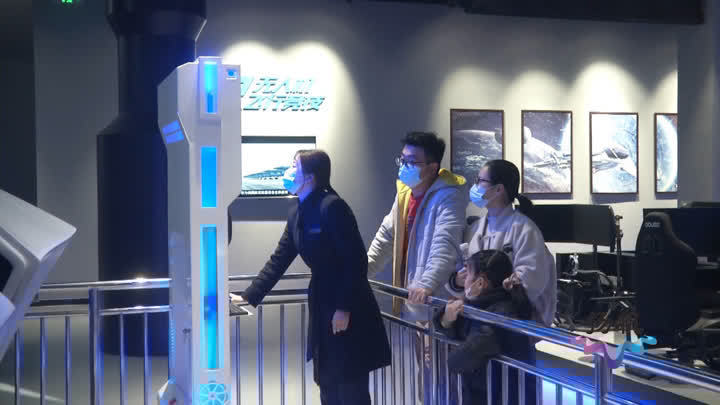 记者在位于生态科技新城的扬州航空馆看到,三楼的互动体验区有VR体验,还有模拟飞行体验,虽然是上午,但是已经有不少家长带着孩子来体验,在模拟设备的辅助之下,孩子们也能身临其境地学习到航空知识。