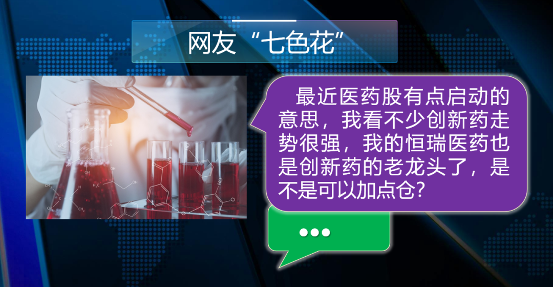 网友“七色花”留言:最近医药股有点启动的意思,我看不少创新药走势很强,我的恒瑞医药也是创新药的老龙头了,是不是可以加点仓?