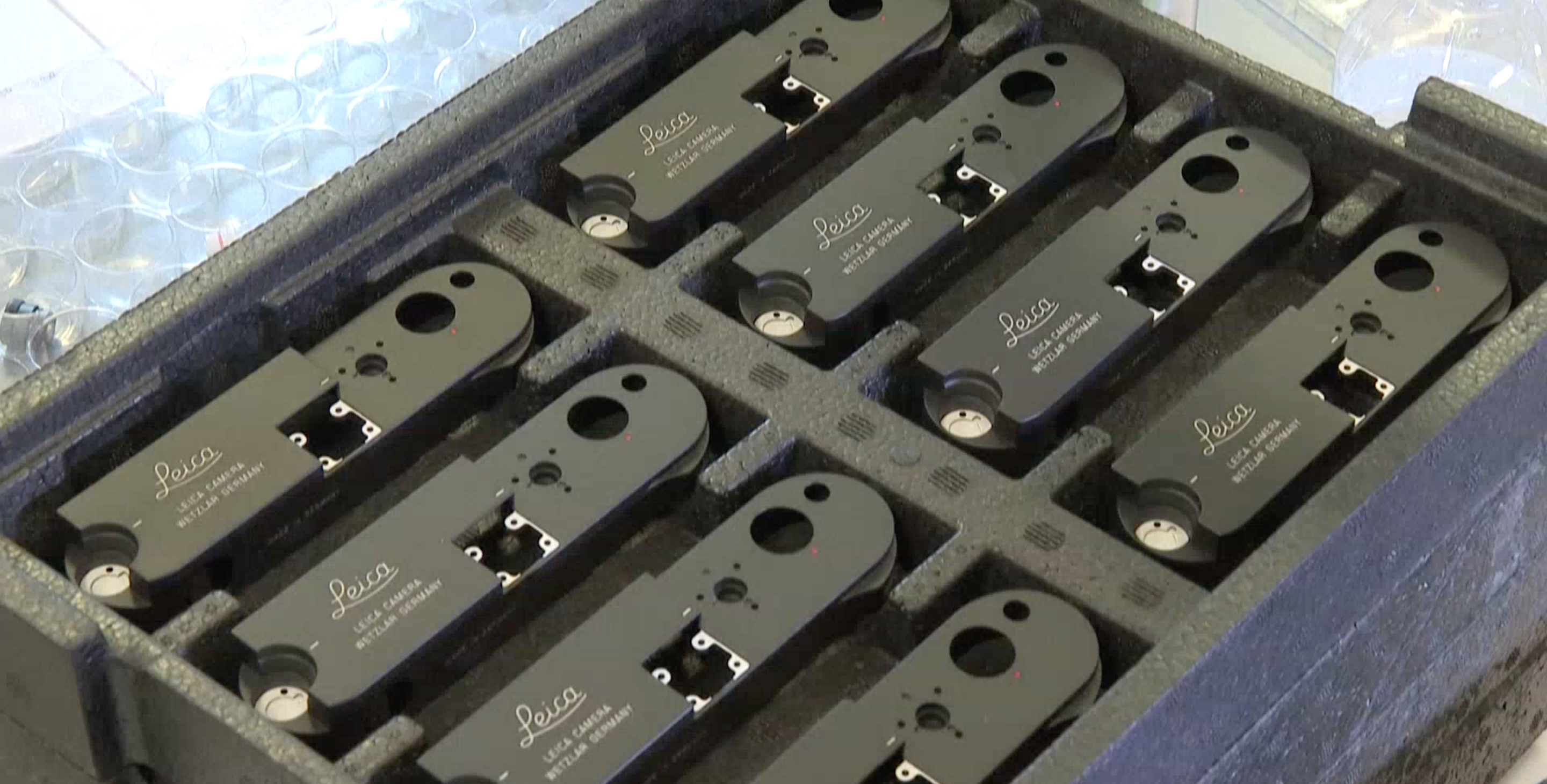 工厂内工人们正在检查光学镜头、绘制机身细节。在无尘装配室里,70名工人配备精密螺丝刀和防静电镊子,用600多个零件手工组装这些设备。徕卡1925年在莱比锡春季博览会展出首款量产相机,随后成为众多知名摄影师和记者的创作工具。