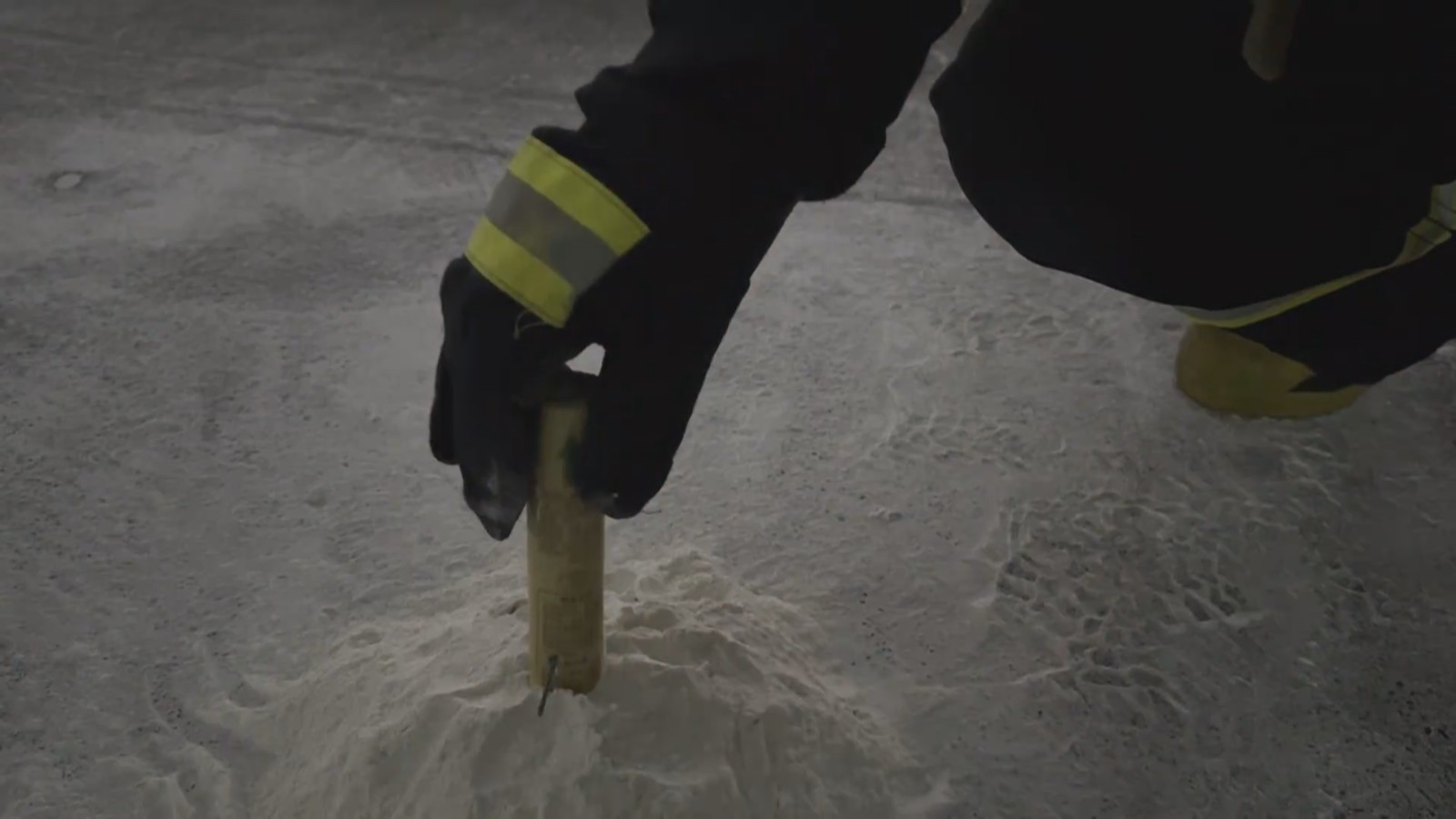 实验现场,消防队员准备了一些面粉,中央放了一个小型的鞭炮。