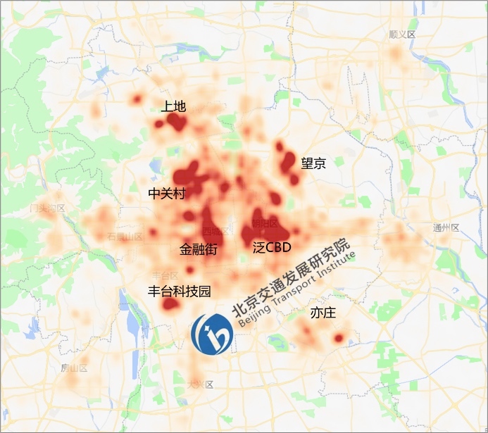 去年本市人口居住地、工作地整体分布特征与往年相比变化不大,居住地分布仍旧呈现“环形”加“十字形”放射分布特征,回龙观、天通苑等居住组团依旧显著。工作地分布中,CBD、中关村、金融街、上地、望京、亦庄、丰台科技园等“七大就业组团”凸显。