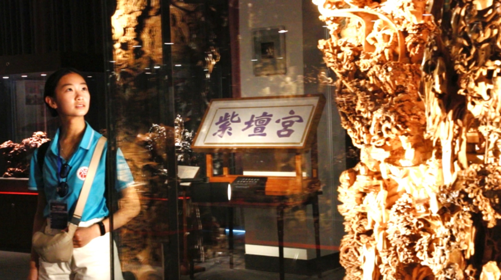 7月28日,中国华文教育基金会第六届全球华语朗诵大赛集结营探访中国紫檀博物馆。