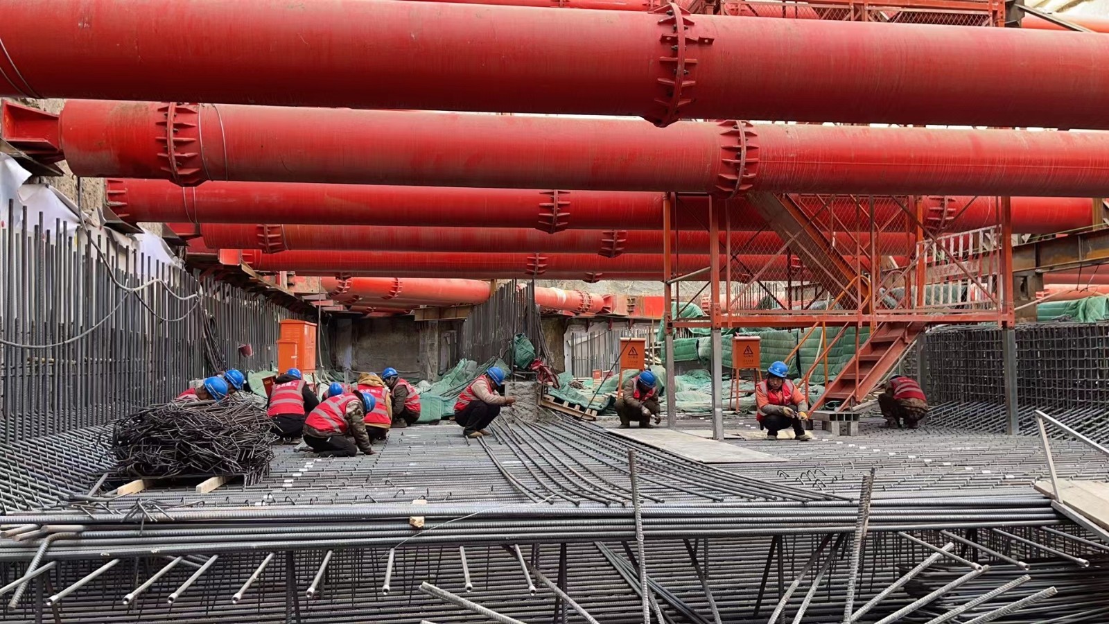接下来,施工团队将在此基础上搭建起车站主体。记者了解到,车站基坑长达532米,局部宽度接近54米,跨度大、结构复杂,属于超大基坑作业区。