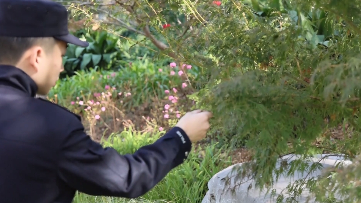 东湖生态旅游风景区公安分局吹笛派出所副所长 梁 震:他家住在小区一楼,外面就有一个庭院,里面种了很多苗木,我们发现被盗的树木已经被他移栽到了这个庭院中。