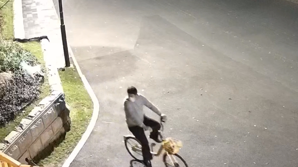民警查看园区内公共视频发现,11月21日晚上九点左右,曾有一名男子在被盗苗木跟前徘徊了20多分钟然后离开。大约半小时后,他又骑着一辆电动自行车回到了现场。