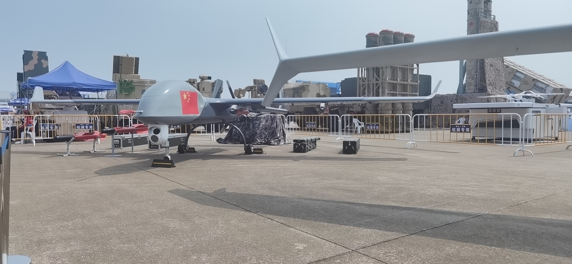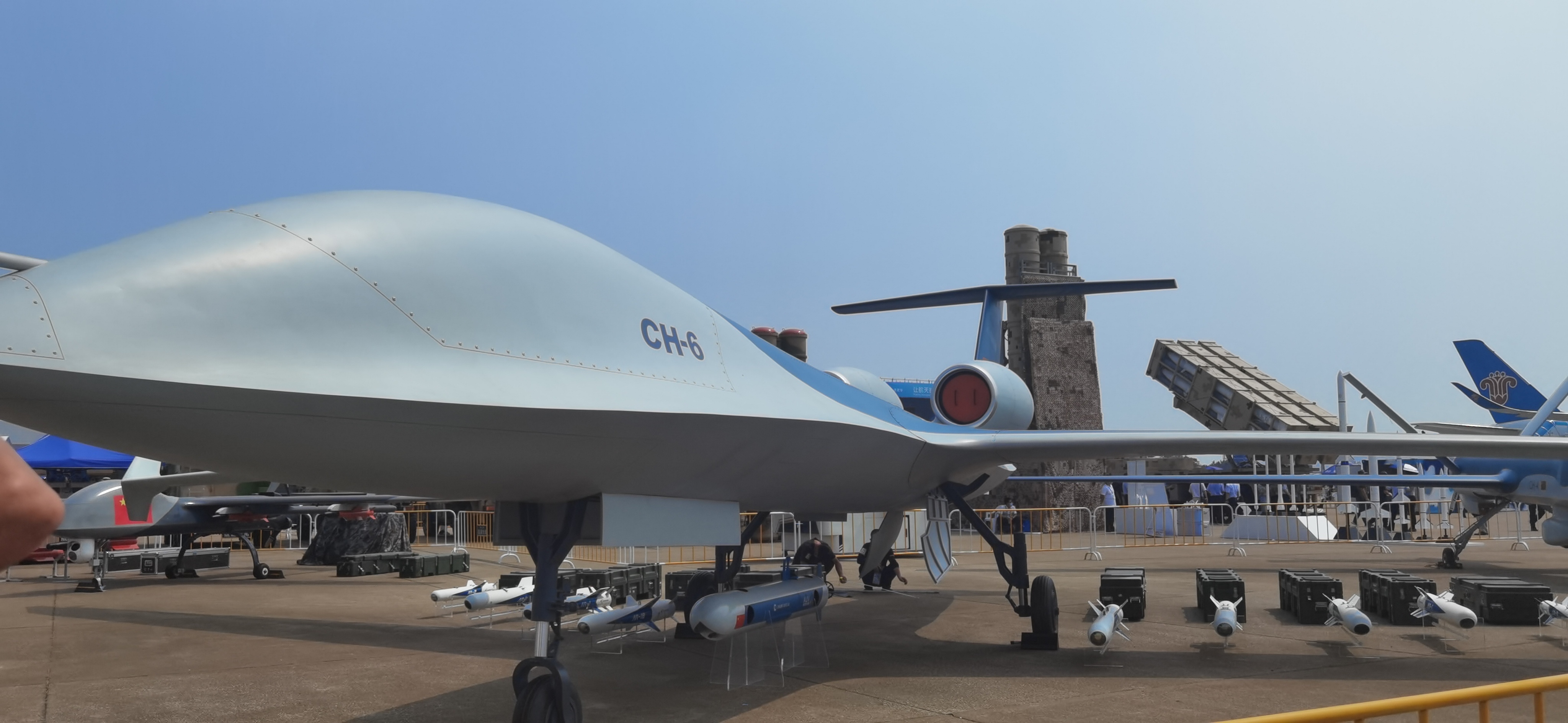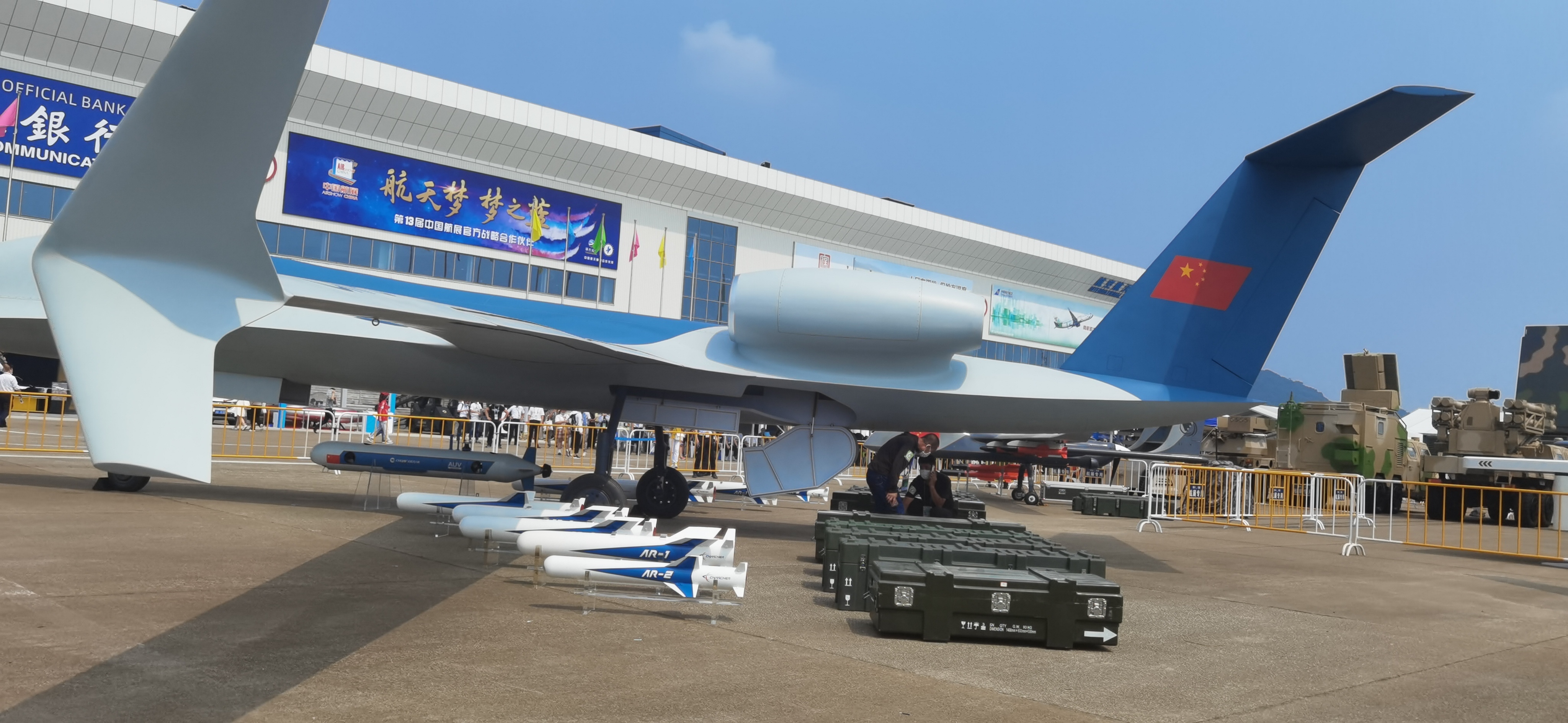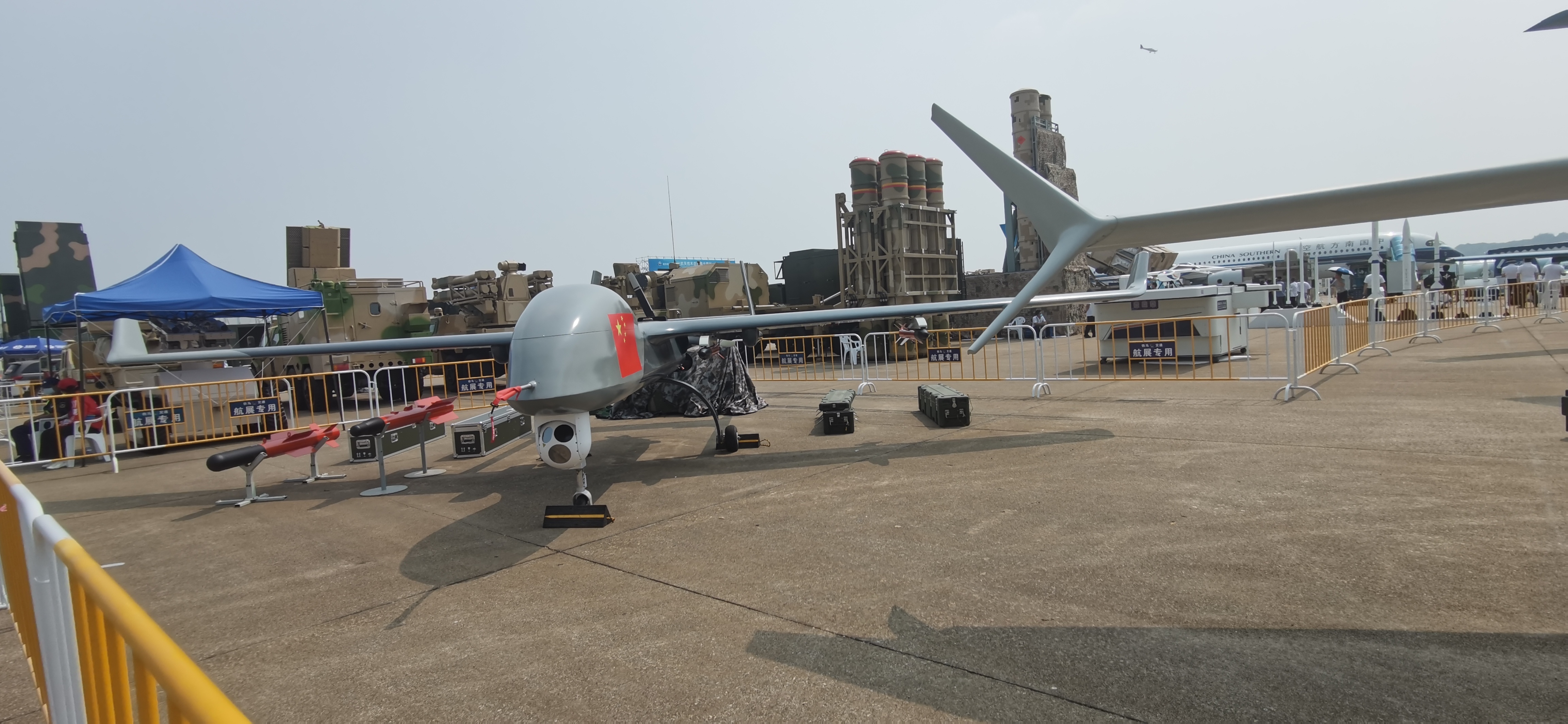 首次参展的彩虹-6是“彩虹”家族的新明星,作为一款大型高端无人机平台,彩虹-6无人机的最大起飞重量达到了7.8吨,机体装载空间丰富,具备挂载光电、SAR雷达、预警雷达、电子侦察、空地导弹、空地炸弹、反辐射导弹、中小型巡飞弹等多种载荷的能力,同时依托低耗油率中小型推力涡扇发动机,续航时间达到20小时左右,可以作为空中长时间驻留平台。