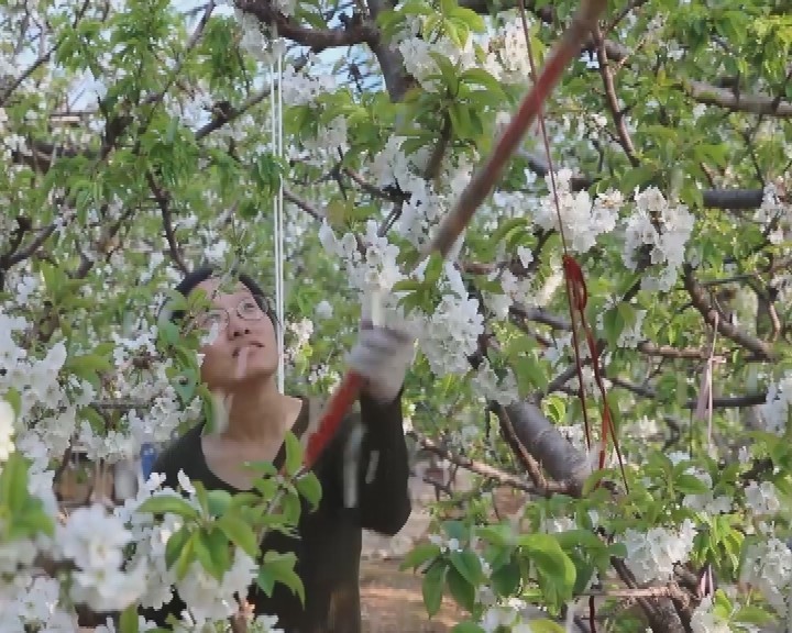 眼下正是大棚樱桃花开的时节,在山东省临朐县冶源街道南孟家庄村的大棚里,村民忙着敲花和吹花,对樱桃树进行花期管理。纷纷抖落的花瓣和忙前忙后的村民,构成了一幅人勤春来早的田园画卷。临朐县作为国家农综区辐射区,设施大樱桃面积已发展到5万多亩。