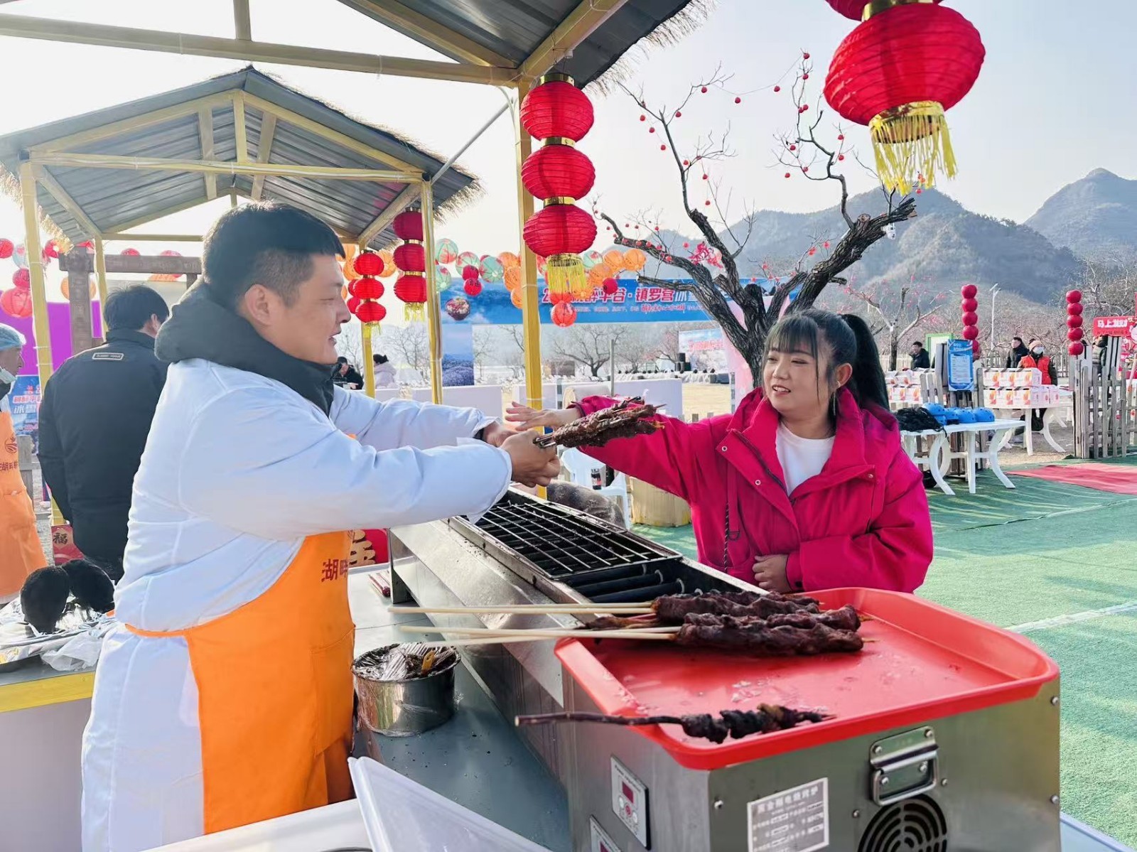 现场更设有“限量冰糖葫芦免费品尝”活动,先到先得,为冬日增添一份甜意。热闹的“年味大集”汇聚了各类特色农产品、手工艺品及乡村好物。“营里好物展示区”集中展示了镇罗营镇的优质农副产品,是游客挑选伴手礼、支持乡村产业的好去处。最具特色的当属“观白尾海雕,品泉水火锅”体验。在欣赏珍稀鸟类白尾海雕翱翔英姿的同时,围坐在暖意融融的火锅旁,用清冽甘甜的山泉水涮煮新鲜食材,享受视觉与味觉的双重盛宴,成为本次嘉年华独一无二的亮点。