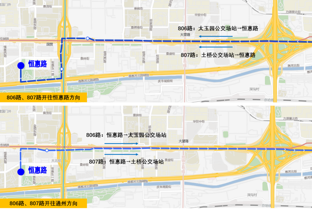 双向增设“恒惠路”站;开往通州方向增设“大北窑西”站,取消“大北窑南”站。