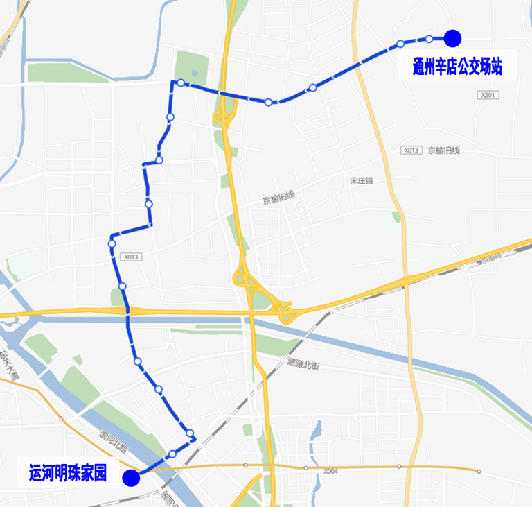 调整后首末站不变(通州辛店公交场站-运河明珠家园)。