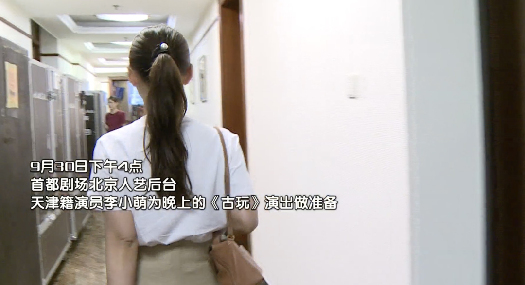 9月30日下午4点,在首都剧场北京人艺后台,天津籍演员李小萌正为晚上的《古玩》演出做准备。
