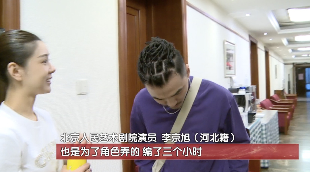 在后台,李小萌遇到了河北籍演员李京旭。为了自己的角色,李京旭特意编了一个特别帅气的发型。