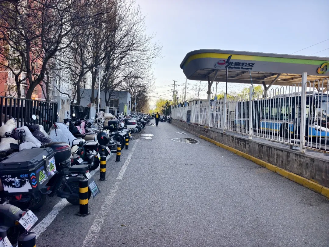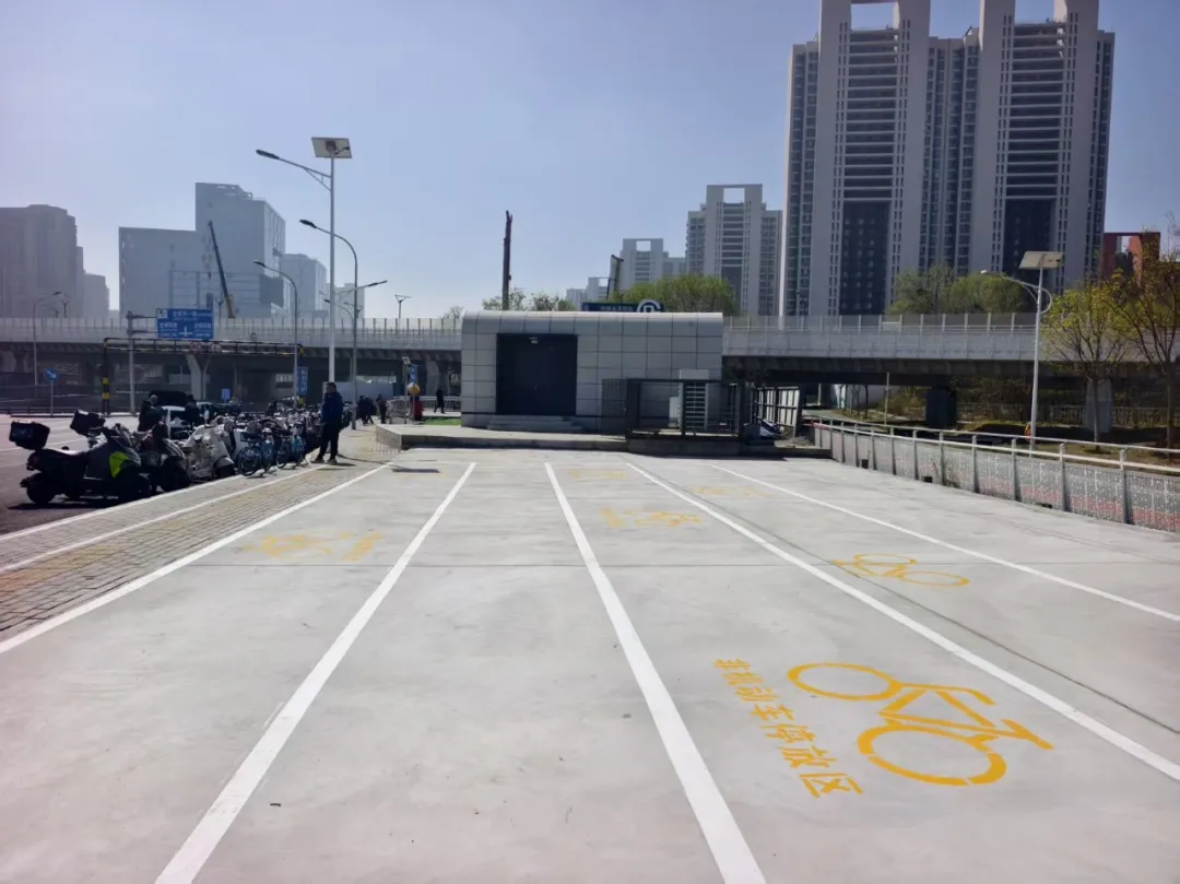 作为本次专项整治行动的重点点位,同时也是新增面积最大的区域,18号线龙泽西站D口周边的非机动车停车区成效显著。该区域原为闲置空地,经地面硬化改造后,被整齐施划成400平方米的非机动车停放区,还按车型特点分区规划,清晰标注了“非机动车停放区”“共享单车入栏结算停放区”字样及导向箭头,既避免了混停造成的空间浪费、取车不便等问题,又大幅缓解了既有临时停放区的承载压力与杂乱状况。