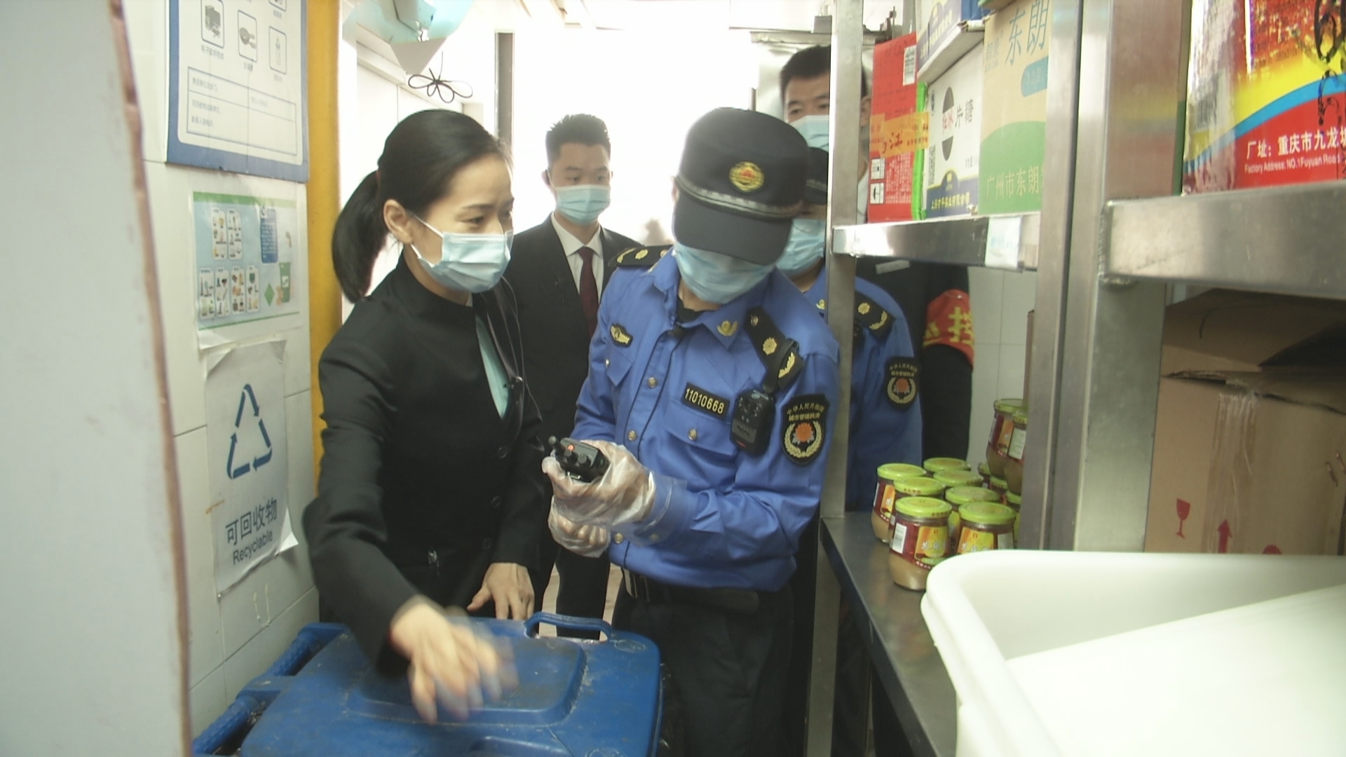 查完疫情防控,齐振他们又来到餐馆的后厨检查垃圾分类,看到厨余垃圾过多,齐振希望餐馆能宣传光盘行动。