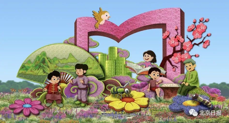 西北角为“文化生活”花坛,顶高8米,以百姓丰富多彩的文化生活为场景,体现了扎实推进全国文化中心建设,弘扬中华优秀传统文化,让文化自信融入百姓生活。