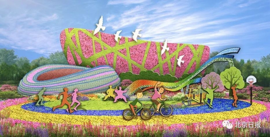 西单东北角将布置“健康生活”花坛,顶高七米五,以全民健身为场景,配以鸟巢、冰丝带、大跳台等,体现了健康就是人民幸福生活的基础,全面推进健康中国的建设,为实现中华民族伟大复兴的中国梦打下坚实健康基础。
