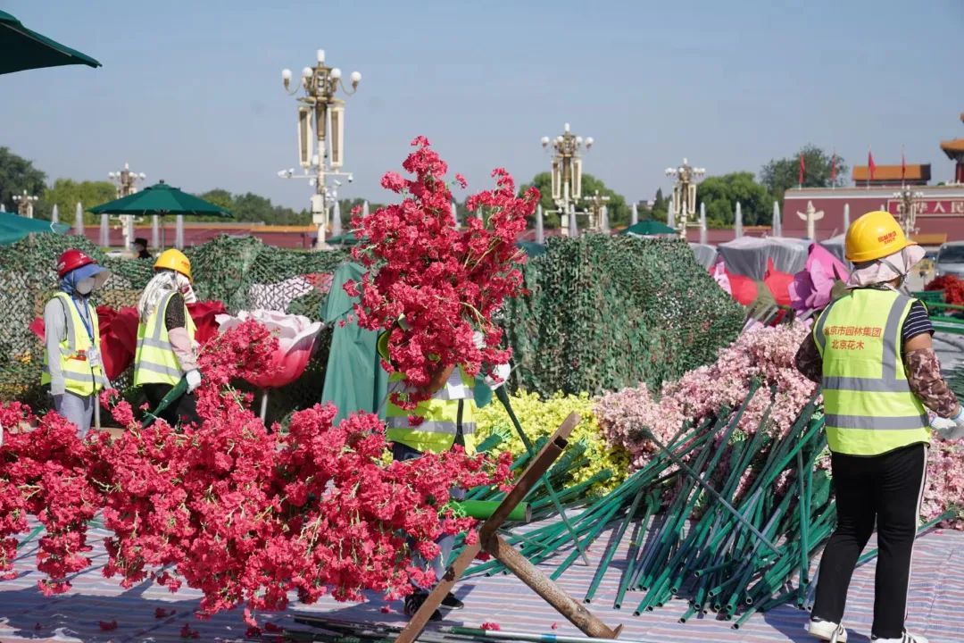 根据北京市园林绿化局公布的2022年国庆天安门广场及长安街沿线花卉布置方案显示,今年花坛布置以“喜迎二十大,奋进新征程”为主题,在天安门广场中心将布置“祝福祖国”巨型花果篮,东西长安街沿线将布置14组精心设计的立体花坛,整体花卉布置工作预计在9月25日也就是本周日左右完工亮相。