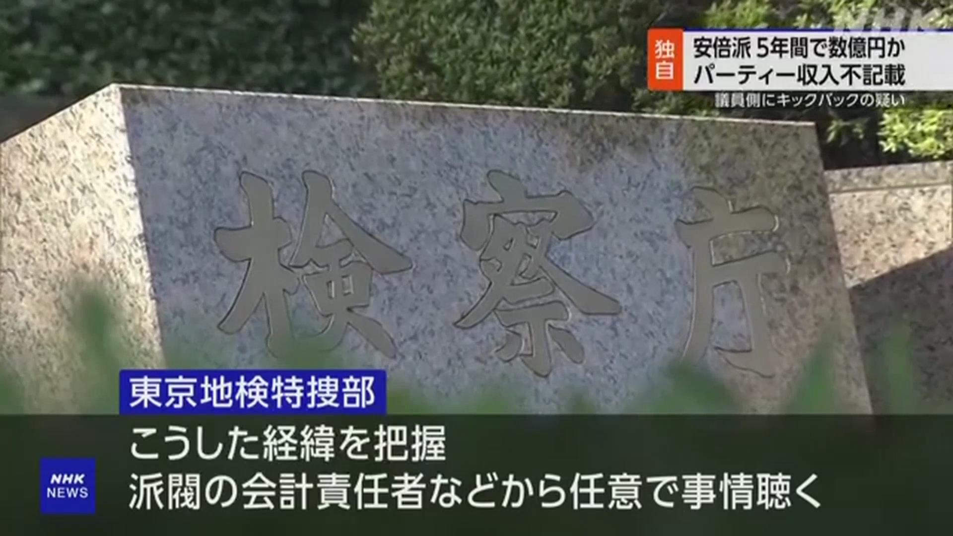 连日来,东京地方检察厅特搜部持续对自民党内最大派系“安倍派”展开调查。“安倍派”正式名称为“清和政策研究会”,曾由前首相安倍晋三领导,目前拥有99名国会议员。这一派系近期被曝未按相关规定记录政治筹款派对券的全部销售收入,“小金库”累计总额达到数亿日元。