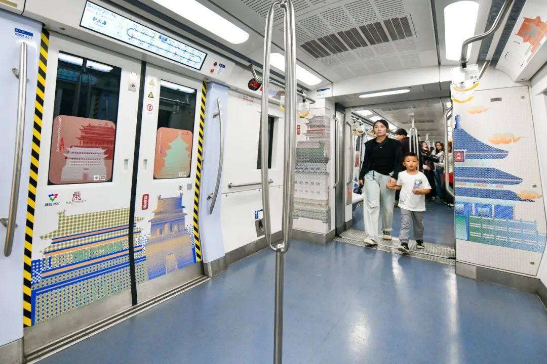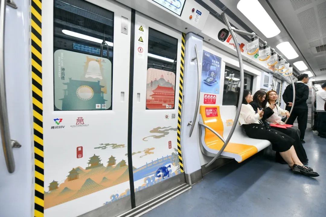 自2024年年初以来,北京京企中轴线保护公益基金会联手“中腾基金”和腾讯数字文化实验室,与北京地铁运营公司相继打造了北京中轴线地铁8号线、2号线两列专列,并通过北京中轴线文化地铁票卡发行、印章打卡等活动形式,将北京中轴线文化遗产的故事带进了北京地铁。