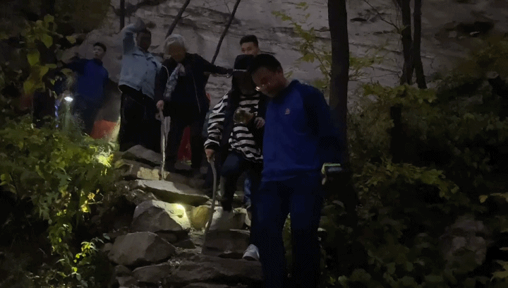 消防人员抵达山顶,5名待转移人员有伤残人士、孕妇、及行动不便患有高血压的老人,由于天色已晚,台阶不好走,为确保游客不受二次伤害,消防人员通过轮流背负,搀扶方式安全转移游客至山下。