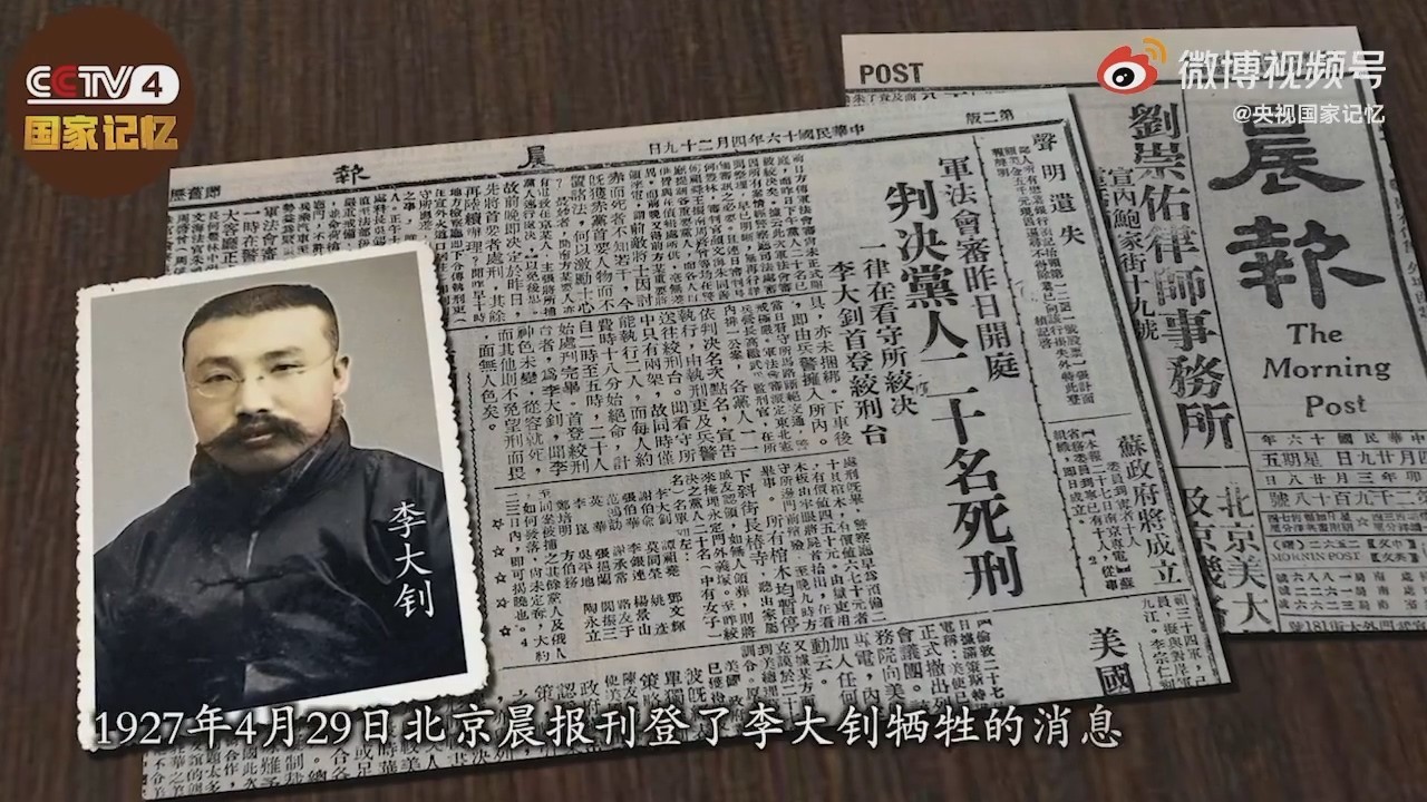 1927年4月28日,李大钊从容走上绞刑架,英勇就义,时年38岁。次日,北京《晨报》刊登了李大钊牺牲的消息,还原李大钊行刑现场:“首登绞刑台者,为李大钊”、“闻李神色未变,从容就死”……李大钊为了宣传马克思主义、实践马克思主义,英勇牺牲,对于信仰、对于真理矢志不移!致敬,李大钊!