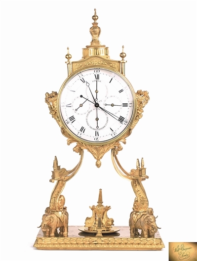 在拍场上见到洋人进贡给咱的大钟有很多,但在东正春拍上一尊产自英国的铜鎏金象驮钟绝对罕见,因为它的设计绝对有“前瞻”性——自带静音开关。