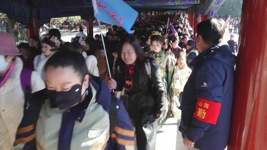 大年初四,北京各大公园迎来春节假期历史上最高的游客量203.41万人次,同比增长35.61%。天坛公园今天(初四)客流量达到23.07万人次,位列全市公园首位,也创下了天坛公园历史上单日游客量最高峰。