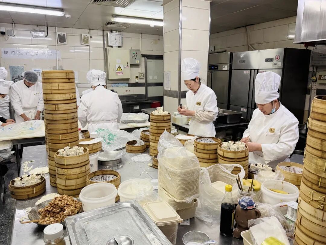 以非遗烧麦为主角的年夜饭,搭配京味经典菜,乾隆白菜、葱烧海参、清蒸鱼、油焖大虾等等。后厨师傅们提前备料,把“除夕不打烊、匠心不停歇”的老规矩延续至今。