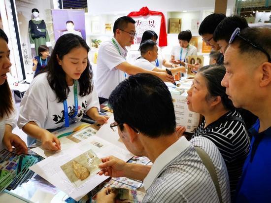 本次世界邮展河南展区特别带来了《殷墟》版票册、纪念邮折、《一片甲骨惊天下》、《千字甲骨文》、姓氏首日封等殷墟文化特色产品,吸引了众多参观者驻足欣赏,品鉴购买。