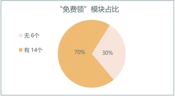 20个电商平台App中有14个有“免费领”模块,占比70%。