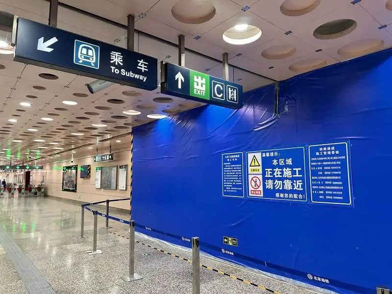 目前,后续的收尾施工还在进行中。在10号线大红门站内同样可以看到正在施工中的隔离围挡。在车站的站厅层,有一处蓝色的封闭围挡,上面张贴的施工告知书显示,此处进行的正是大红门站换乘通道施工,以实现10号线与8号线的换乘连通,进一步完善轨道交通线网,提升轨道交通服务水平。这也意味着,大红门站的站内换乘将在此处实现。