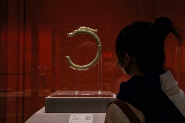 1月25日,观众欣赏新石器时代红山文化玉龙。中国日报记者 姜东 摄