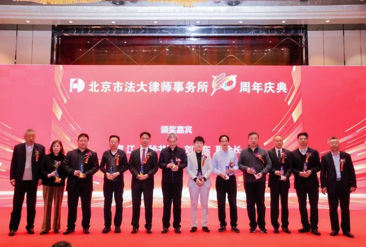 (荣获法大所十年“风雨同舟奖”和二十年“忠诚守护奖”代表律师上台领奖,袁江副秘书长和刘卫东副会长颁奖)