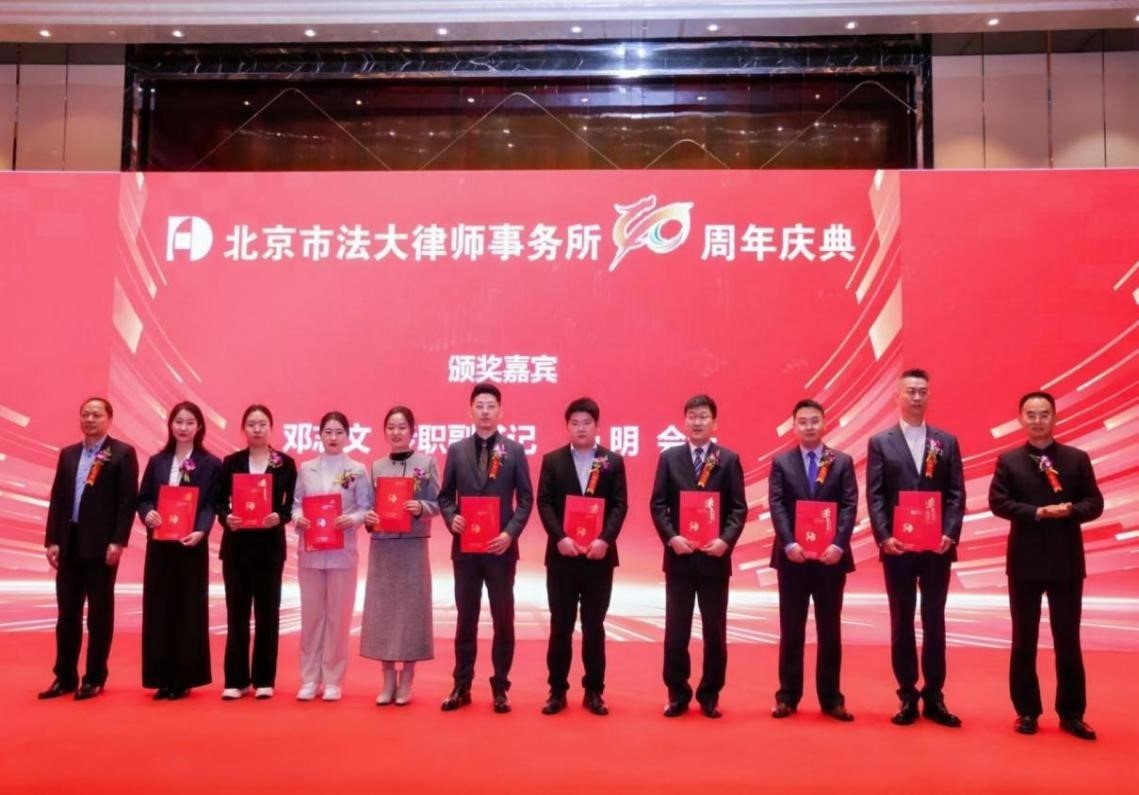 (荣获法大所优秀律师上台领奖,邓志文专职副书记和杨明会长颁奖)
