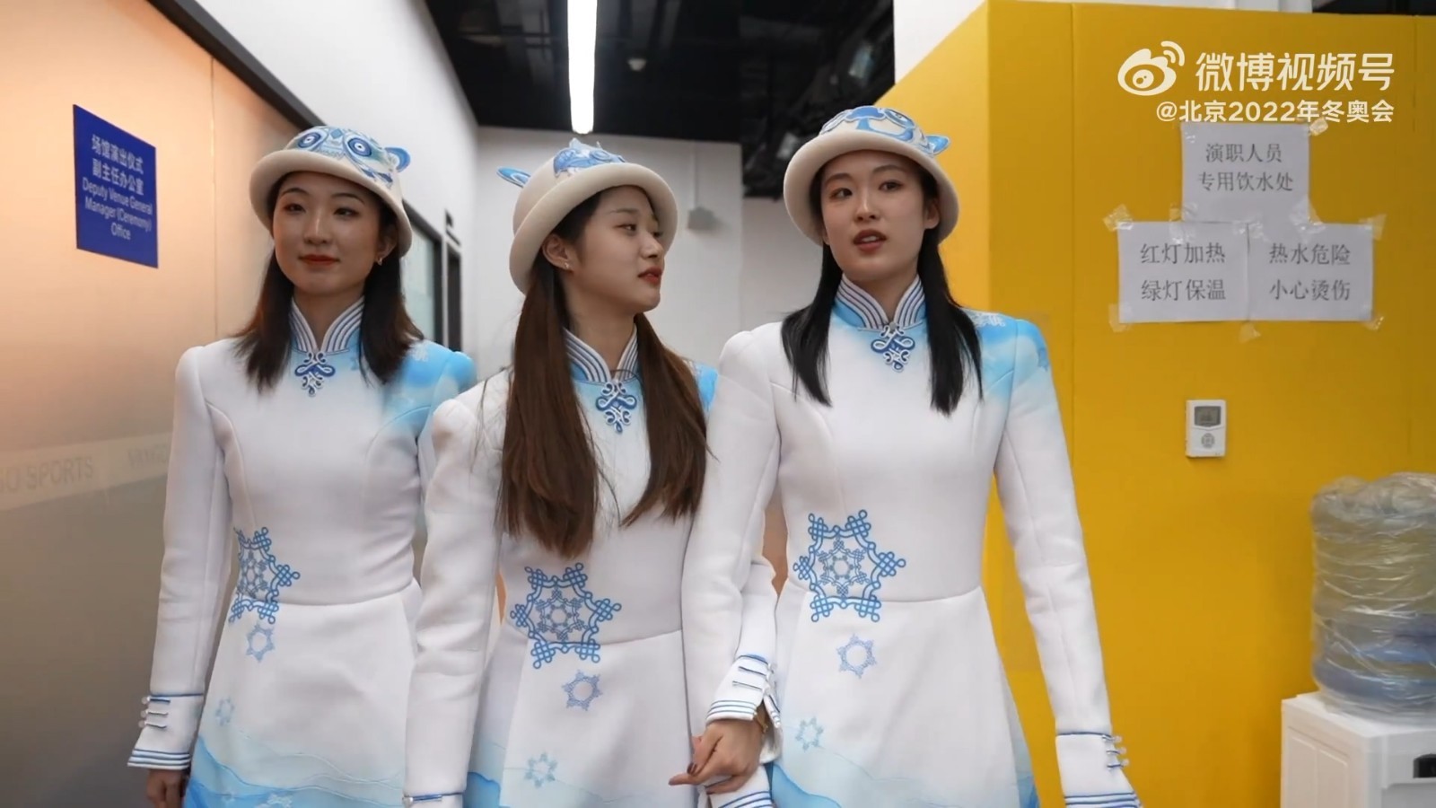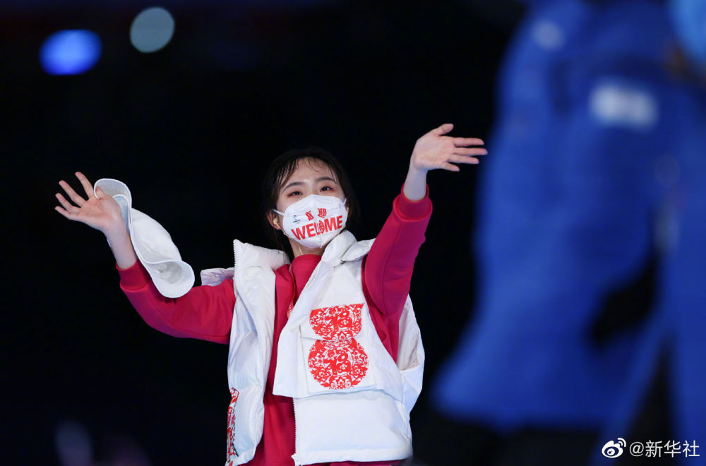 ③“欢迎”口罩。入场式标兵的服装,采用了河北蔚县的民间剪纸图案,凸显中国人过年的喜庆吉祥。标兵所佩戴的口罩上,以中英双语印出“欢迎”字样,成为疫情之下一份特别的温暖问候。北京欢迎你!!!