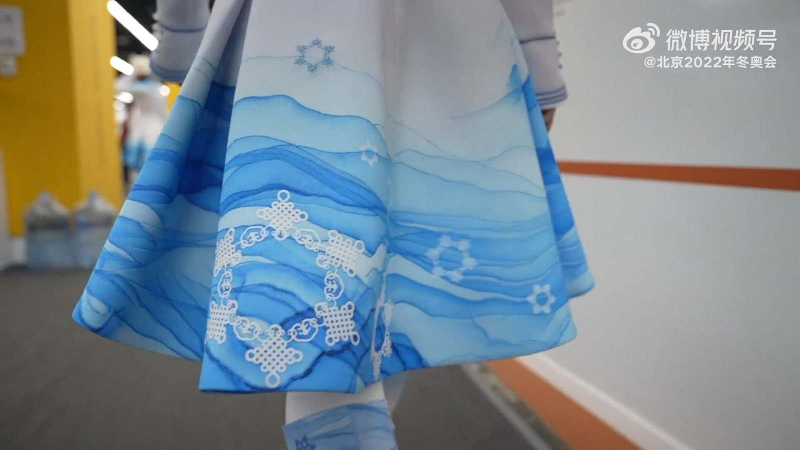 ①雪花引导牌。按照“一朵雪花”贯穿始终的设计理念,引导员手持的引导牌,采用了发光的雪花造型。设计灵感来自“中国结”的图案。中国结是中国古老的手工编织工艺,一个结从头到尾用一根线编成,寓意团结吉祥。